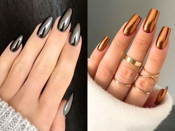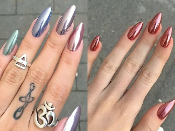 Nail móng dài tráng gương là mẫu nail đang rất “hot” trong những năm gần đây. Để tạo ra kiểu nail này, người thợ sẽ phủ một lớp bột chrome lên bề mặt móng để tạo hiệu ứng phản chiếu sáng bóng, lấp lánh như tráng gương. Mẫu nail này phù hợp với những cô nàng theo đuổi phong cách thời thượng, hiện đại. Bạn có thể dễ dàng kết hợp nail tráng gương với nhiều dáng móng dài khác nhau như móng vuông, móng nhọn, móng tròn,…