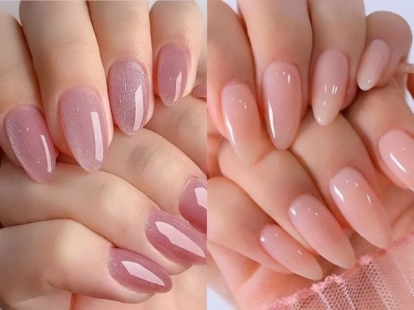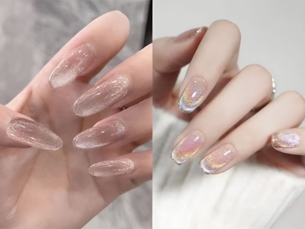 Những mẫu nail thạch trong suốt luôn mang đến cho bạn vẻ nữ tính, ngọt ngào khó cưỡng. Bạn có thể kết hợp khéo léo kiểu nail này với một chút ánh nhũ hoặc hiệu ứng ombre để tổng thể trở nên long lanh, đẹp mắt hơn. Kiểu nail thạch này thường phù hợp với các tông màu nhẹ nhàng, tươi sáng như nude, hồng, xanh ngọc,…