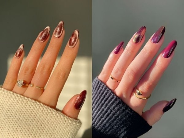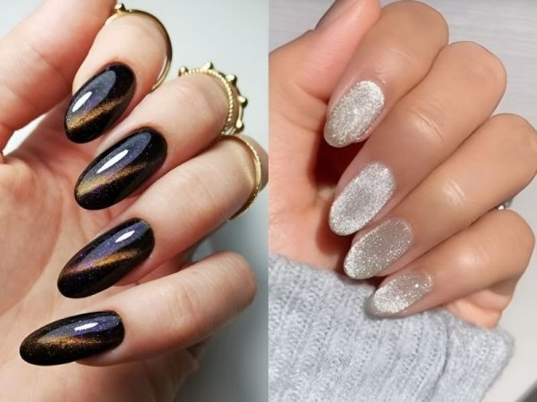 Nail cat eyes là kiểu nail cho hiệu ứng màu sáng tối long lanh trông tựa như mắt của những chú mèo. Để tạo được mẫu nail này, bạn cần sử dụng một loại sơn gel đặc biệt có chứa lượng nhũ và kim loại nhiều hơn so với sơn gel thông thường. Sau khi sơn lên bề mặt, thợ làm nail sẽ dùng bút nam châm hơ qua để kéo các phân tử kim loại tạo thành dải vân sáng lấp lánh, đẹp mắt.