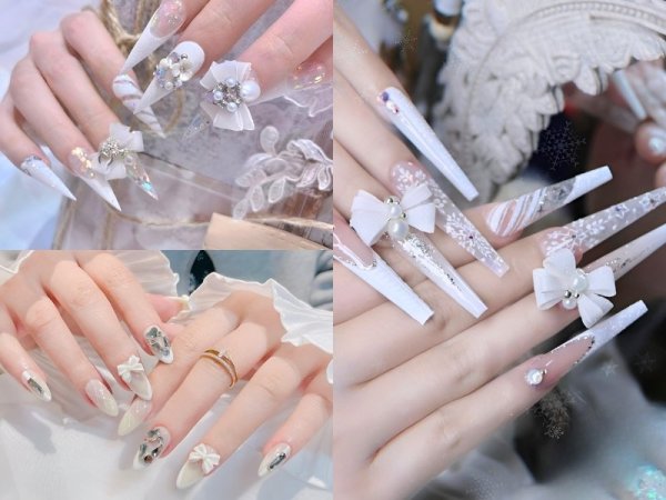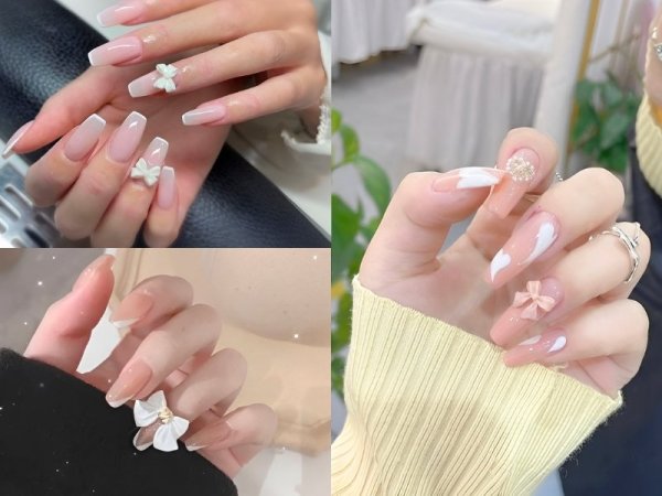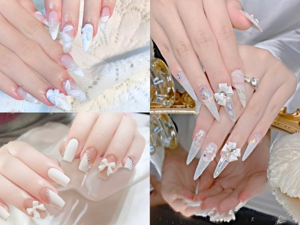 Nail đính nơ trắng mang lại vẻ tinh tế và thanh lịch với màu trắng tinh khiết. Được trang trí bằng nơ nhỏ kết hợp cùng các màu sắc và chi tiết đa dạng, kiểu nail này phù hợp với nhiều phong cách và dịp khác nhau. Ngoài ra, kiểu móng tay đính nơ trắng này cũng có thể phù hợp với nhiều dạng móng: oval, nhọn, tròn,… khác nhau.
