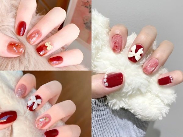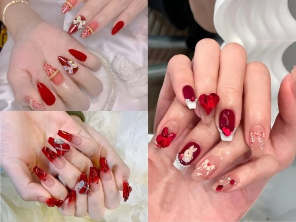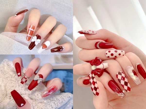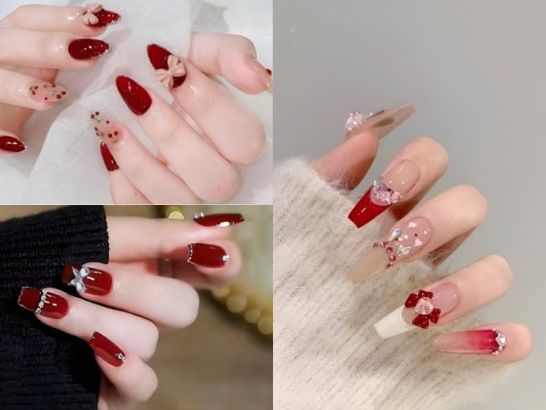 Bộ nail đính nơ đỏ rực rỡ này sẽ mang đến cho bạn bộ móng nổi bật và quyến rũ. Màu đỏ rực rỡ thường tượng trưng cho sự nhiệt huyết và tự tin, khi bổ sung thêm nơ nhỏ hoặc các chi tiết đá pha lê lấp lánh,… càng tăng thêm sự quyến rũ và nổi bật cho tổng thể. Mẫu nail này rất phù hợp cho những dịp đặc biệt, đặc biệt là khi bạn muốn tạo sự chú ý cho bộ móng của mình.