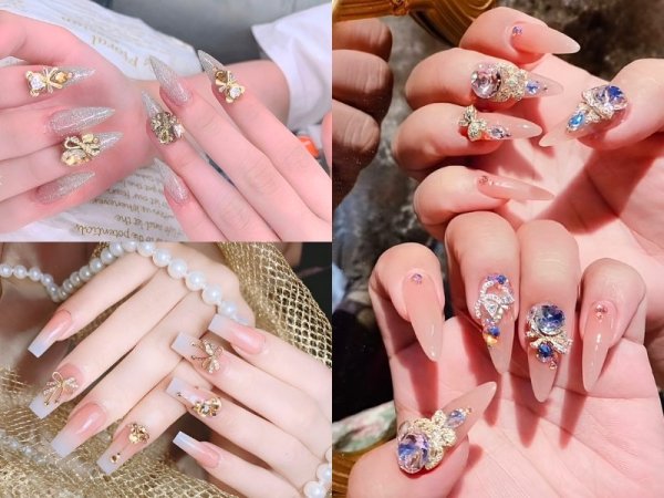 Nail đính nơ đá mang đến vẻ đẹp sang trọng và lộng lẫy. Họa tiết nơ kết hợp với các viên đá pha lê, đá làm nail,… làm nổi bật và tô điểm cho bộ móng tay. Kiểu nail này thích hợp cho các buổi tiệc, dạ hội hoặc các sự kiện đặc biệt khi bạn muốn gây ấn tượng với vẻ đẹp lộng lẫy và sự sáng chảnh. Bạn cũng nên thử kết hợp những phụ kiện, trang sức lấp lánh trên bàn tay để tăng thêm phần lộng lẫy và hài hoà.