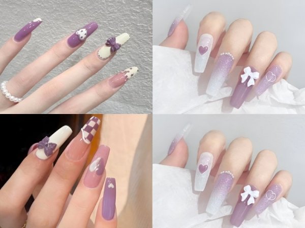 Nail đính nơ tím mộng mơ mang đến vẻ đẹp lãng mạn, nữ tính và cực phù hợp cho những người yêu thích màu tím. Với mẫu nail xinh đính nơ này, bạn có thể tuỳ ý lựa chọn sơn base tím đậm hay tím pastel kết hợp với các họa tiết nơ nhỏ sẽ tạo nên bộ nail tím mộng mơ đẹp lung linh và dễ thương. Ngoài ra, tuỳ sở thích cá nhân mà bạn có thể lựa chọn thêm các chi tiết lấp lánh hoặc thêm nhũ cho bộ móng thêm chanh sả.
