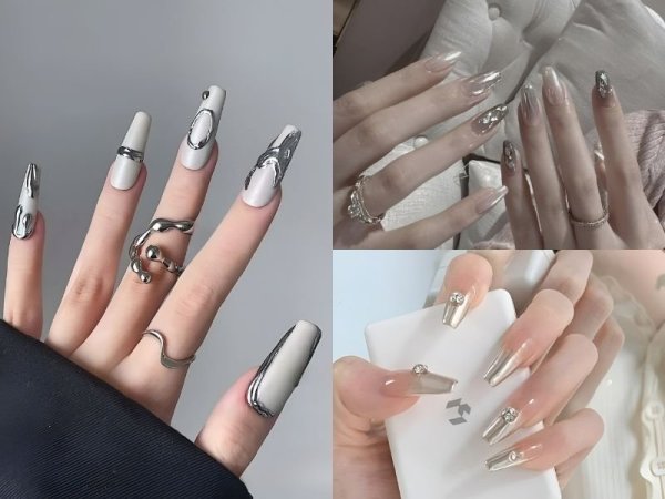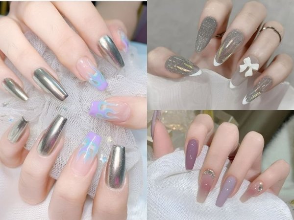 Phá cách thời trang độc đáo với mẫu nail đẹp tráng gương (Nguồn: Korean Nail Style, Letty Beauty, Nailroom) Hiệu ứng tráng gương độc đáo và mới lạ dành cho các cô nàng cá tính (Nguồn: esty.com, Tamy Nail, Nailroom)Mẫu nail đẹp đính đá