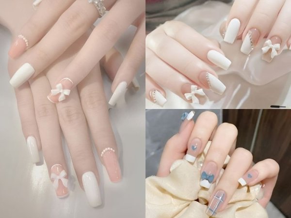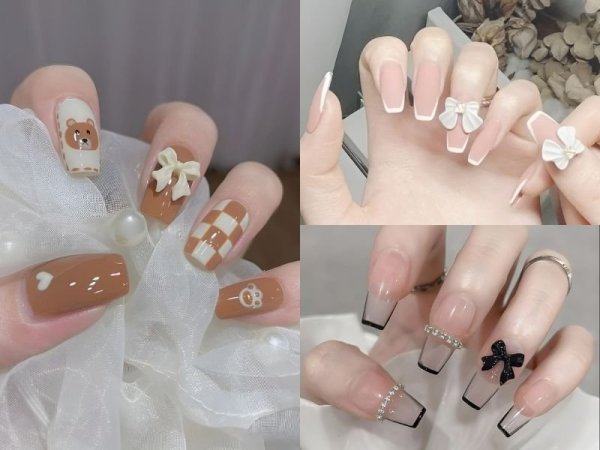 Đắp bột phù hợp với những bạn nữ có móng thật khá yếu (Nguồn: Korean Nail Style, Nini Nail Art, temu.com) Bạn có thể thoải mái thiết kế nhiều mẫu móng đẹp sành điệu (Nguồn: Nails Bidu, Nail by Nhu Y Nguyen)Mẫu nail đẹp đính nơ
