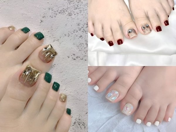 Những mẫu nail đẹp với màu sắc đặc trưng của dịp lễ hội cuối năm (Nguồn: voh.com.vn, newyearlight.com, cookie_pu) Ngày cuối năm thêm sành điệu với những bộ nail lung linh (Nguồn: manicurious, K Beauty Addiction, The Palm)Gợi ý 13+ mẫu móng chân đẹp cho nàng thêm cuốn hút