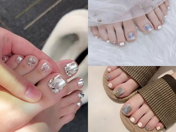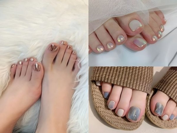 Bên cạnh móng tay đẹp thì nhiều nàng dâu cũng rất chăm chút cho bộ nail chân thêm phần nổi bật. Các nàng có thể lựa chọn những tone màu đơn giản như trắng sữa, xám, nâu hoặc be kết hợp cùng với hiệu ứng tráng gương, mắt mèo hoặc đính đá là đã có ngay một bộ nail đẹp, cực kỳ lộng lẫy và nổi bật trong ngày trọng đại rồi đấy!