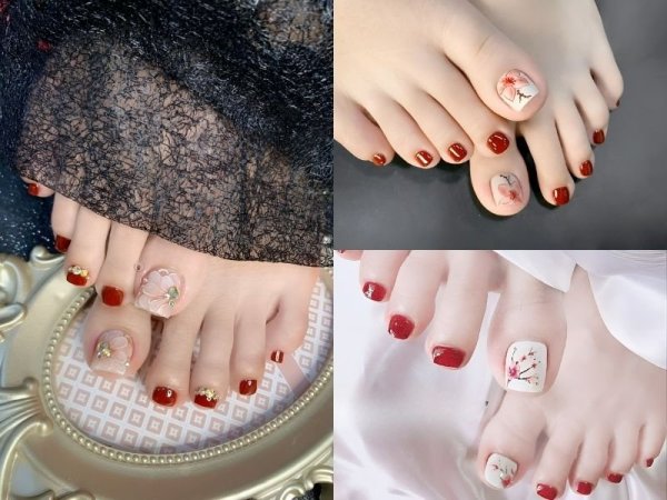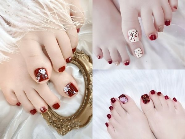 Những mẫu nail đẹp với sắc đỏ rực rỡ du xuân chắc hẳn sẽ là lựa chọn hoàn hảo dành cho các cô gái trong dịp Tết đến xuân về. Sắc đỏ rực rỡ cùng với những họa tiết đặc trưng của ngày Tết sẽ đem đến cho bạn một bộ nail nổi bật nhưng vẫn không kém phần sành điệu. Bên cạnh màu đỏ thì các bạn cũng có thể thoải mái lựa chọn các màu sơn móng chân khác phù hợp với gu thời trang của bản thân, mix thêm một chút tráng gương hoặc ánh nhũ để tăng thêm phần lấp lánh cho bộ nail.