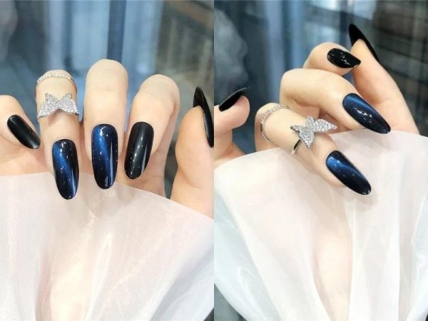 Nail đen mắt mèo huyền bí và mạnh mẽ (Nguồn: LIGHTS LACQUER | Nail Polish, Jelly Balms & Press Ons | Etsy) Nail mắt mèo đen ánh xanh siêu đẹp (Nguồn: www.walmart.ca) Nail mắt mèo đen làm nổi bật màu da các nàng (Nguồn: www.amazon.in, www.mallareddyecw.com)Mẫu nail mắt mèo trắng