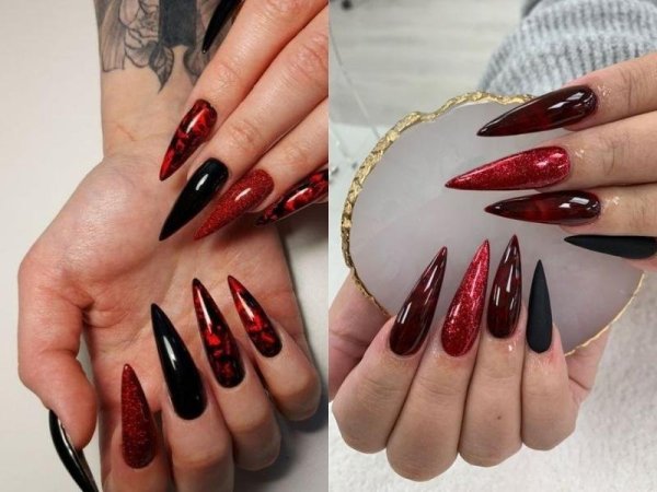 Nail mắt mèo đỏ mạnh mẽ và quyến rũ (Nguồn: Vivian Maire) Nail mắt mèo đỏ vừa táo bạo vừa cá tính (Nguồn: Glamermaid-Press On Nails , s.click.aliexpress.com) Nail mắt mèo đỏ nhọn cho các nàng thích móng nhọn dài (Nguồn: Nancy, a)Mẫu nail mắt mèo xanh lam
