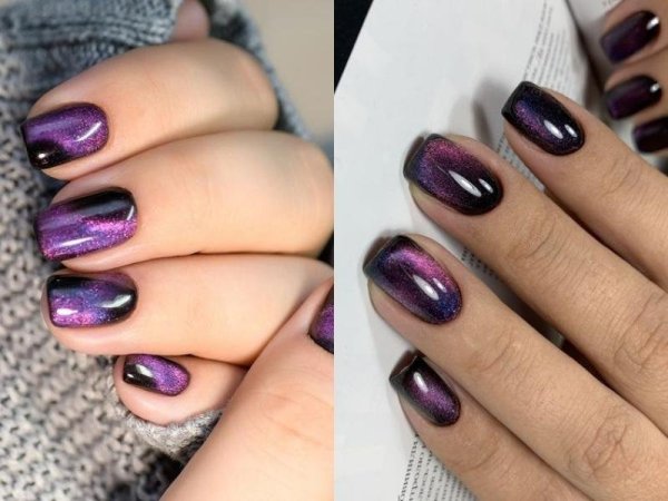 Nail mắt mèo cầu vồng lung linh và rạng rỡ (Nguồn: Allure, AliExpress) Nail mắt mèo cầu vồng trên nền đen sẽ giúp nàng thu hút mọi sự chú ý về mình (Nguồn: formulakrasoty.com, Ирина Кошмал) Nail mắt mèo cầu vồng thu hút và độc lạ (Nguồn: RARJSM, amzn.to) Nail mắt mèo có cầu vồng vừa tinh tế vừa cầu kỳ (Nguồn: Аленка Жадаева, vk.com)Mẫu nail mắt mèo màu tím