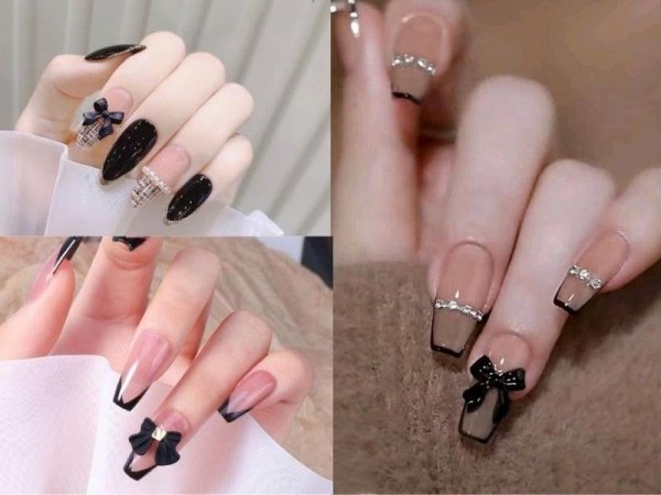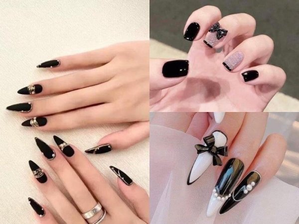 Nail màu hồng là mẫu nail mang đến sự nữ tính, ngọt ngào (Nguồn: Làm Nails, cocoelious, linktr.ee – Pinterest) Sắc hồng tươi tắn vừa phù hợp với màu da châu Á, vừa mang đến nét tươi trẻ, hiện đại (Nguồn: Moonnnnn_1712, Linzy, Mint.tang – Pinterest)Mẫu nail màu đen trendy, cá tính
