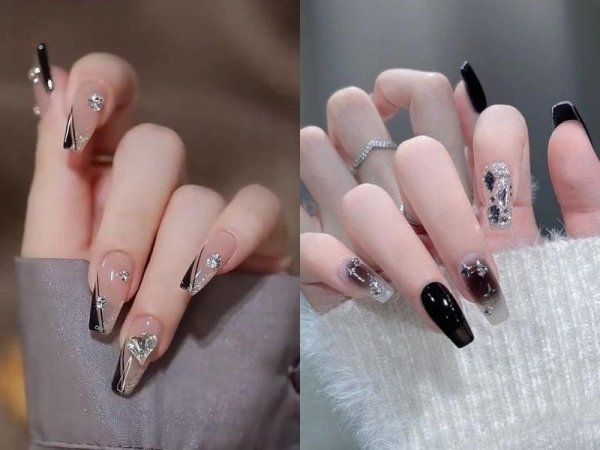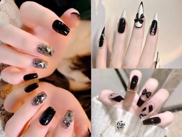 Nếu bạn yêu thích phong cách sang trọng, quyến rũ thì hãy thử ngay cho mình mẫu nail tay đẹp màu đen nhé. Màu nail này phù hợp với mọi tông da, từ da ngăm, da trung bình đến da sáng. Bạn có thể lựa chọn kiểu sơn bóng hoặc sơn lì, ngoài ra việc kết hợp với đính đá, vẽ họa tiết, mix nhũ sẽ giúp bộ nail của bạn trở nên long lanh và đẹp mắt hơn.
