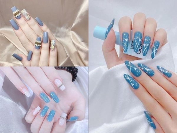 Nail màu xanh dương là mẫu nail tông lạnh có khả năng tôn da cực tốt. Nếu e ngại màu sơn này hơi dừ thì bạn có thể khéo léo kết hợp điểm xuyến, vẽ họa tiết cùng các tông màu tươi sáng khác như trắng, nude,… Ngược lại, nếu theo đuổi phong cách sang trọng, quyền lực thì màu nail xanh dương lì, trơn kết hợp cùng một chút ánh nhũ sẽ là kiểu móng lý tưởng dành cho bạn.
