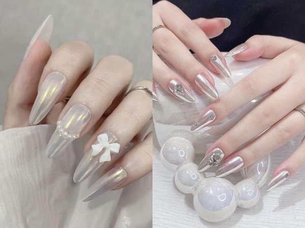 Nail tráng gương ngọc trai đơn giản nhưng rất thanh lịch cho bạn nữ (Nguồn: Linz, Ngân Trần, Ferdi – Pinterest) Các mẫu nail tráng gương hot hít khác bạn có thể tham khảo (Nguồn: Linz, Ngân Trần, Ferdi – Pinterest)Mẫu móng tay loang màu