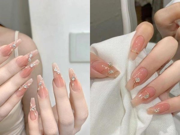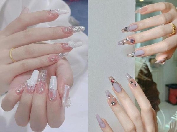 - Mẫu nail đính đá: Đây là mẫu nail có kết hợp đính đá và phụ kiện tạo nên tổng thể cầu kỳ, đẹp mắt. Nail đính đá kết hợp với móng dài sẽ mang đến cho bạn sự sang trọng và cầu kỳ.
