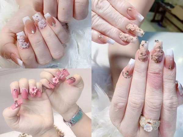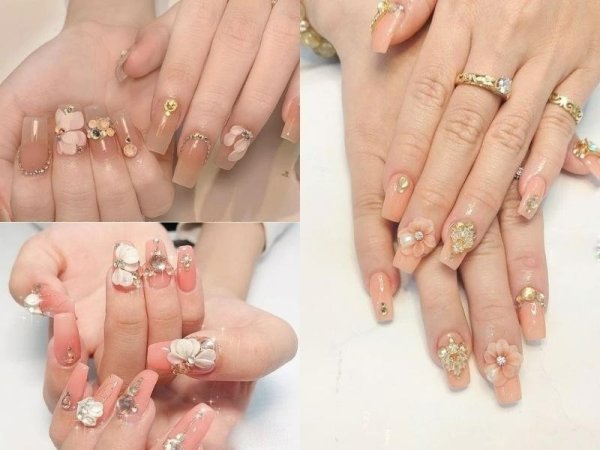 Mẫu nail đính hoa nổi nhẹ nhàng (Nguồn: Lê Thị Lan Anh, Ngân navi, Nhật Thảo Đâng – Pinterest) Các tông màu nhẹ nhàng như pastel hay nude đính hoa nổi sẽ thích hợp để diện hàng ngày (Nguồn: Lê Thị Lan Anh, phunuvagiadinh.vn)Mẫu nail xỏ khuyên