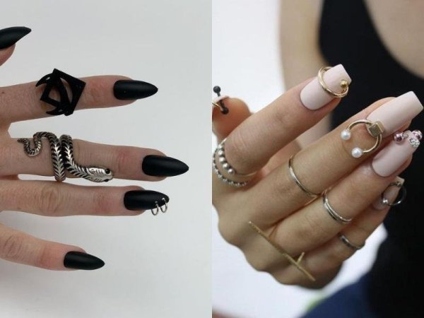 Mẫu nail xỏ khuyên được hàng loạt nghệ sĩ trong và ngoài nước lựa chọn để thể hiện cá tính của mình. Kiểu xỏ khuyên này sẽ giúp bạn tô điểm thêm cho đôi tay của bạn. Những mẫu khuyên được chọn thường có kiểu đơn giản, họa tiết nhỏ và kết hợp với màu sơn đen, tím đậm hoặc nude để trông cá tính hơn. Với mẫu nail này, bạn nên chọn móng úp hoặc nối móng để tránh gây tổn thương đến móng thật.