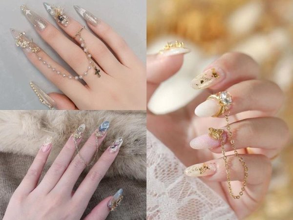 Mẫu nail xỏ khuyên cá tính được nhiều celeb ưa chuộng (Nguồn: joinfo.ua) Nail đính khuyên xích xinh xắn, phù hợp với nhiều sự kiện lớn (Nguồn: Bling Bling