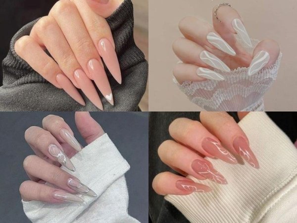 Móng nhọn hay nail nhọn là một trong những mẫu móng cổ điển, có hình dáng thon dài và mũi nhọn hướng ra phía trước. Với form dáng này, bạn nên chọn các mẫu nail sơn thạch đính nơ sang chảnh hoặc tiểu thư. Ngoài ra, một số mẫu nail nhọn tráng gương đẹp là một trong những lựa chọn lý tưởng và thịnh hành hiện nay dành cho các cô nàng theo phong cách sang trọng, đẳng cấp. Dưới ánh đèn, bộ móng này trở nên lấp lánh, thu hút mọi ánh nhìn.