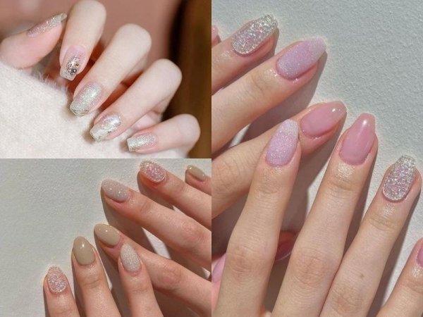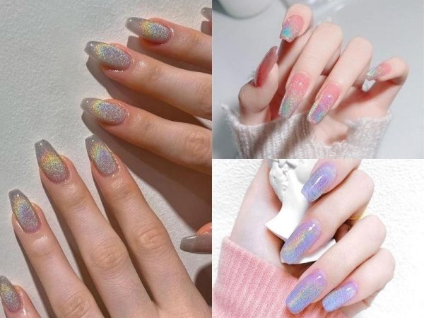 Nail phủ kim tuyến lấp lánh cho bàn tay của bạn (Nguồn: Toyota Hùng Vương, kbeautyaddiction.com)Mẫu nail ẩn xà cừ
