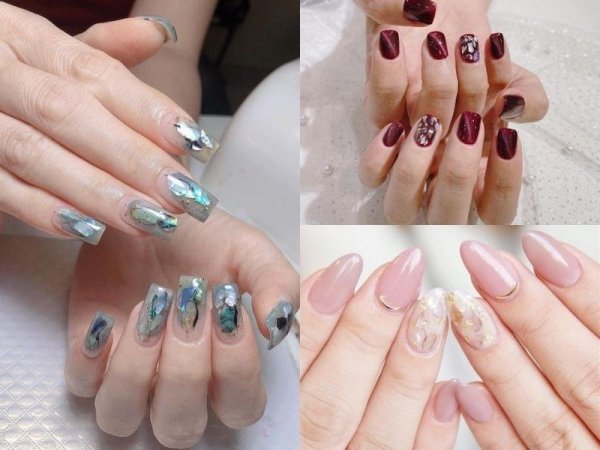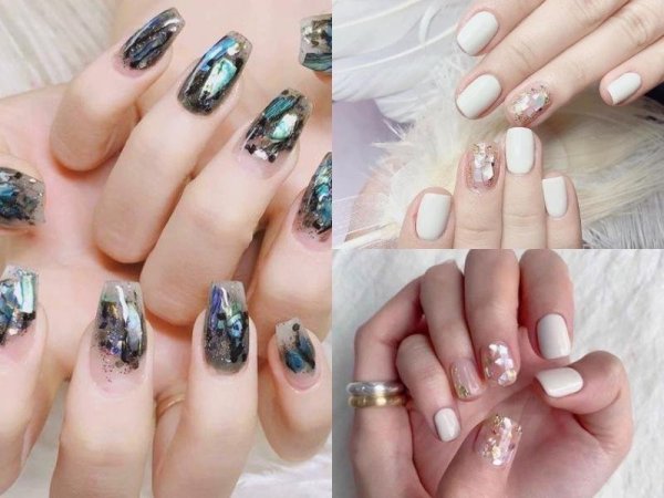 Sự kết hợp giữa đá xà cừ và gel sơn móng đã làm nên một mẫu nail mới lạ, độc đáo. Với các bạn nữ sở hữu làn da trắng, nail ẩn xà cừ sẽ tôn da, giúp thu hút ánh nhìn và nhanh chóng trở thành trung tâm của buổi tiệc. Mẫu nail này cũng rất dễ phối đồ, phụ kiện cũng như nhiều phong cách trang điểm khác nhau.