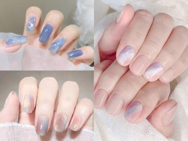 Mẫu nail loang màu giúp sáng da (Nguồn: _09thang7, Ferti, 𝙒𝙞𝙣𝙣𝙞𝙚 – Pinterest) Mẫu nail loang xanh tím xinh xắn cho các bạn nữ (Nguồn: elg.bychendi, Taylor, Jade Phan NailArt – Pinterest)Mẫu nail vân đá sang trọng