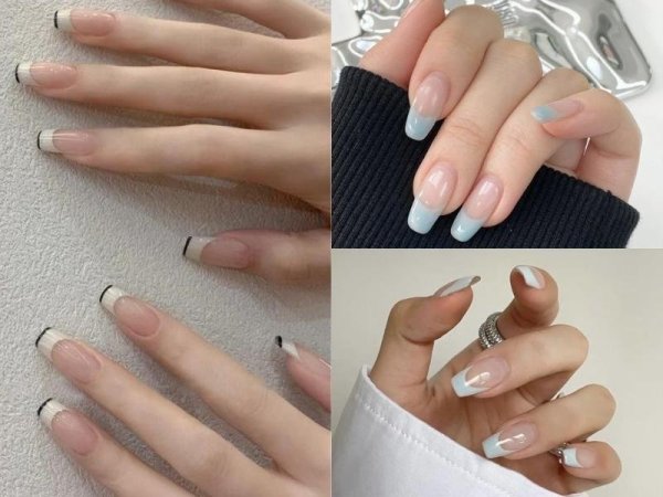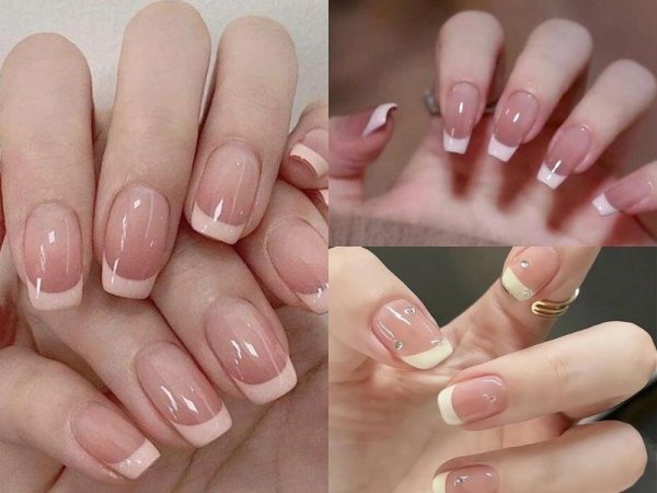 Đây là mẫu nail đơn giản nhất, phù hợp với các bạn nữ theo đuổi phong cách nhẹ nhàng và thanh lịch. Đây là kiểu móng được phủ lên một lớp son dưỡng màu hồng nhạt, kết hợp sơn đầu móng màu trắng hoặc các tone nude. Với kiểu nail này, bạn có thể thoải mái đi học, đi làm đều được bởi tạo hình vô cùng thanh lịch.