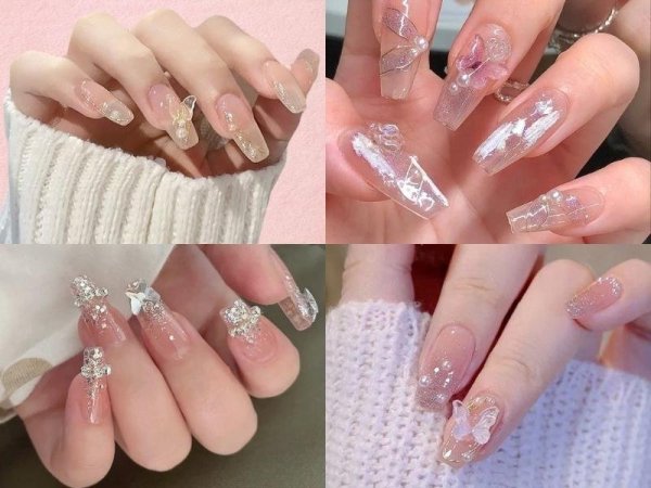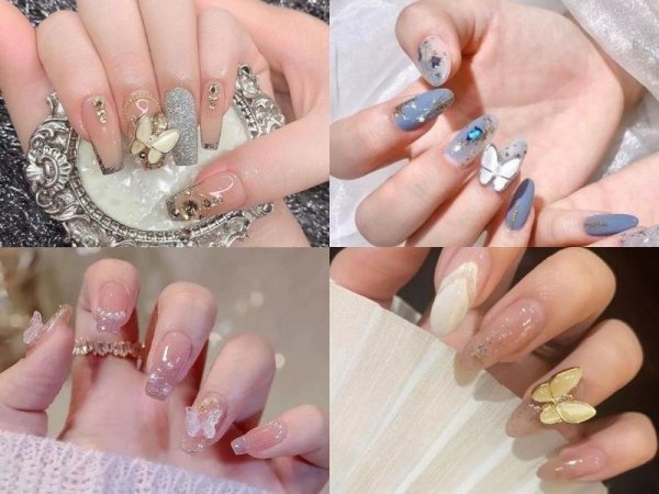 Mẫu nail Hàn Quốc đính charm bướm (Nguồn: Aquarius và mit housse nailroom) Mẫu nail đính charm bướm nhẹ nhàng được nhiều người ưa chuộng (Nguồn: etsy.com, pauu, 𝐅𝐞𝐫𝐝𝐢 – Pinterest)Các mẫu nail màu thạch đơn giản