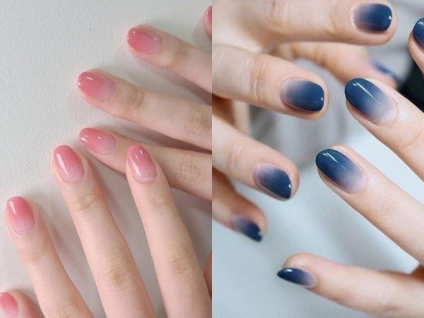 - Mẫu nail sơn ombre: Thiết kế ombre với sự loang màu nhẹ sẽ giúp cho bạn có một bộ móng tay ngắn trang nhã và nhẹ nhàng.