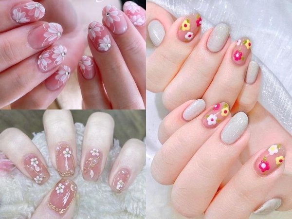 Mẫu nail vẽ hoa với những họa tiết xinh xắn được vẽ tỉ mỉ không chỉ tạo điểm nhấn độc đáo mà còn mang lại vẻ đẹp nữ tính. Mẫu nail này thường được vẽ trên nền móng sơn màu sáng pastel hoặc nhạt như trắng, nude hoặc vàng, hồng. Bạn có thể chọn các mẫu hoa từ đơn giản đến phức tạp như hoa cúc, hoa hồng, hoa mẫu đơn,… Tuy nhiên, kiểu vẽ nail này cần sự chính xác, tỉ mỉ vậy nên bạn hãy đến những tiệm nail chuyên nghiệp để vẽ móng nhé.