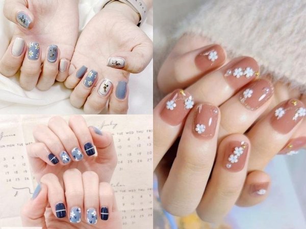 Những nail tay đơn giản ngắn với màu sắc nhẹ nhàng, họa tiết ít sẽ rất thích hợp để các bạn học sinh, sinh viên diện đi học. Bạn hãy chọn những màu sắc nhẹ nhàng, không quá đậm, có thể điểm thêm vài họa tiết xinh xắn như hoa lá, kẻ caro, đá nhỏ để nổi bật hơn.