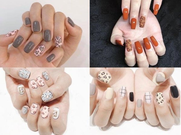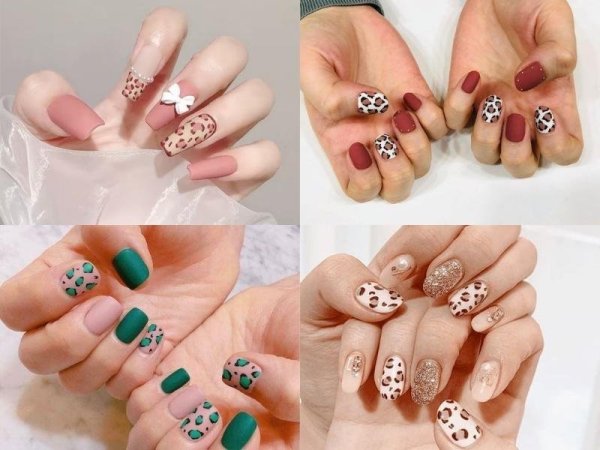 Họa tiết da báo là một trong những mẫu móng tay đẹp (Nguồn: Cáo Xinh Đẹp, Hạnh Thảo, Hạ Di – Pinterest) Họa tiết da báo được kết hợp với nhiều mẫu nail khác (Nguồn: nailbook.jp, ai nguyen, Mint.trang – Pinterest)Mẫu nail họa tiết bò sữa