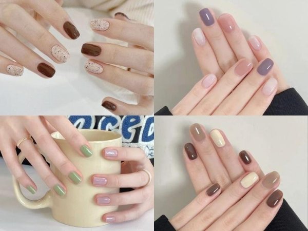 Màu nude là màu móng tay cho da ngăm (Nguồn: amazon.com, esty – Pinterest) Đây là màu nail không kén tông da da, không quá rực rỡ mà lại mang nét đẹp tự nhiên (Nguồn: kbeautyaddiction.com)Mẫu nail đơn giản màu nâu
