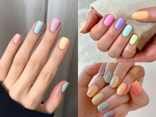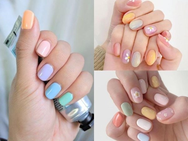 Nếu bạn đang tìm kiếm một kiểu móng tay đẹp trẻ trung, nhẹ nhàng thì hãy thử ngay cho mình nail màu pastel đơn hoặc sơn xen kẽ các màu. Các tông màu pastel tươi sáng như hồng nhạt, xanh, vàng,… khi được mix khéo léo với nhau sẽ tạo nên tổng thể đẹp mắt, chỉ cần sơn gel trơn hoặc kết hợp vẽ họa tiết đơn giản là bạn đã có ngay bộ móng phù hợp để đi làm, đi chơi hàng ngày.