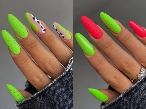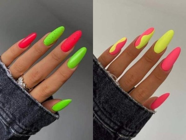 Mẫu nail màu pastel nhẹ nhàng (Nguồn: Nail Art Design 2023, L𝓲𝓪, u1010 -Pinterest) Bạn có thể kết hợp thêm nhiều họa tiết nhỏ nhắn để thu hút hơn (Nguồn: Neelam John, Dad Decor – Pinterest)Các mẫu móng tay đẹp màu neon