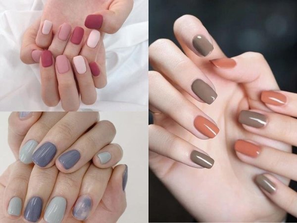 - Mẫu nail trơn đơn giản: Đây là những mẫu nail được sơn một màu duy nhất hoặc kết hợp khoảng 2 – 3 màu lại với nhau. Ngoài ra, để đỡ nhàm chán, bạn có thể tráng gương hoặc sơn thạch để móng tay thêm lung linh nhé!