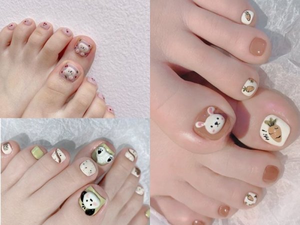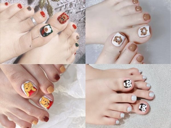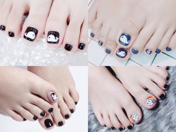 Với các bạn học sinh hay những cô nàng yêu thích sự đáng yêu và tinh nghịch thì kiểu vẽ họa tiết con vật, hoạt hình cute này rất hợp với bạn. Bộ nail chân với các hình vẽ ngộ nghĩnh này sẽ giúp phong cách của bạn thêm trẻ trung hơn. Bạn có thể chọn những kiểu vẽ hình thú đáng yêu, đơn giản và cute như gấu trúc, cá heo, thỏ, tuần lộc,… nhé.