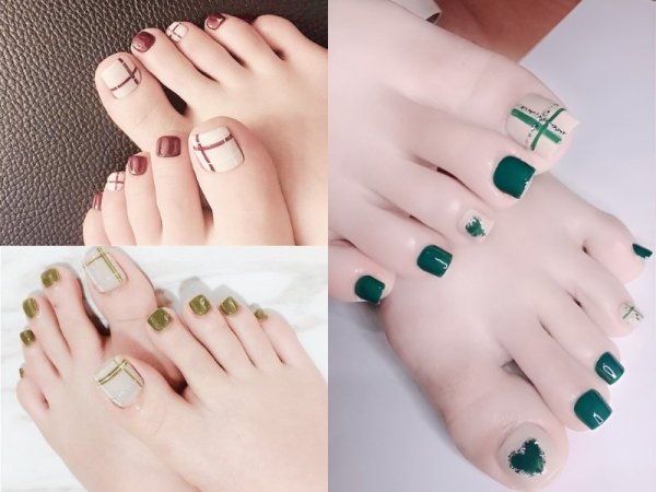Kiểu họa tiết kẻ sọc tinh tế, gọn gàng mà cực kỳ đơn giản sẽ rất phù hợp cho những bạn nữ theo đuổi phong cách thanh lịch, trưởng thành. Vẽ họa tiết kẻ sọc lên khoảng 1-3 móng sẽ tạo nên hiệu ứng cân đối cho bộ nail, giúp tạo cảm giác móng thon, dài hơn. Kiểu nail này phù hợp với khá nhiều tone da với các màu sắc cơ bản như đỏ, xanh. Bạn có thể tạo kẻ sọc ngang, dọc hoặc kết hợp cả hai để tạo nên hình dạng riêng. Mẫu nail chân kẻ sọc không chỉ giúp tôn lên sự nữ tính, thanh lịch mà còn mang đến một cảm giác cuốn hút, mới mẻ.