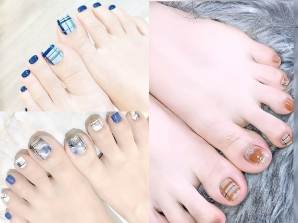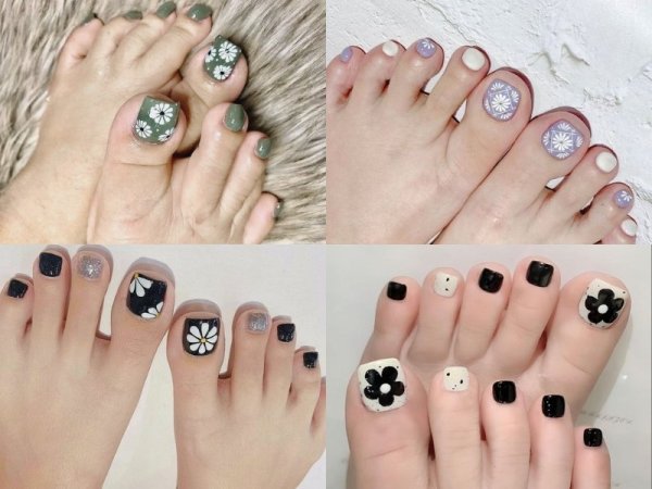 Vẽ hoa móng chân đơn giản lên 1-2 móng chân cực kỳ tinh tế, nhẹ nhàng nhưng vẫn vô cùng quý phái (Nguồn: Mia Nail – Pinterest, 1010 Nail – Pinterest, Tố Uyên Nail – Pinterest, Linh Tây Nail – Pinterest) Kiểu làm nail này thường được thiết kế vẽ hoa nhiều cánh, kết hợp nhiều bông hoa với nhau (Nguồn: Kim Ngọc Nail – Pinterest, 1010 Nail – Pinterest, KOLOUR – Pinterest, Onie_nail – Pinterest)Mẫu nail chân đơn giản kẻ ô