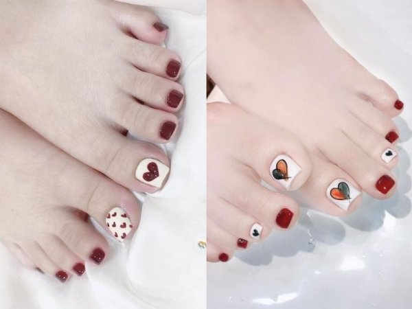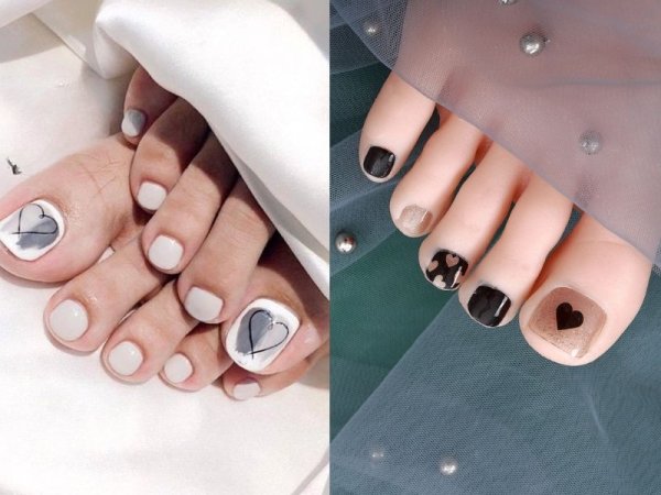 Nail chân xinh đơn giản họa tiết trái tim ngọt ngào, đáng yêu dành cho các bạn nữ (Nguồn: itakeyou.co.uk – Pinterest, Nail Vy Bo – Pinterest) Kiểu nail vẽ móng chân đơn giản hình trái tim và dễ chăm sóc (Nguồn: Lyn Beauty – Pinterest, trucanhn86 – Pinterest) Kiểu nail vẽ trái tim với những sắc tối, trầm như đen, nâu, xám tạo nên một vẻ đẹp mới lạ, quyến rũ (Nguồn: Little Nail – Pinterest, shein.com)Mẫu nail chân đơn giản họa tiết bướm