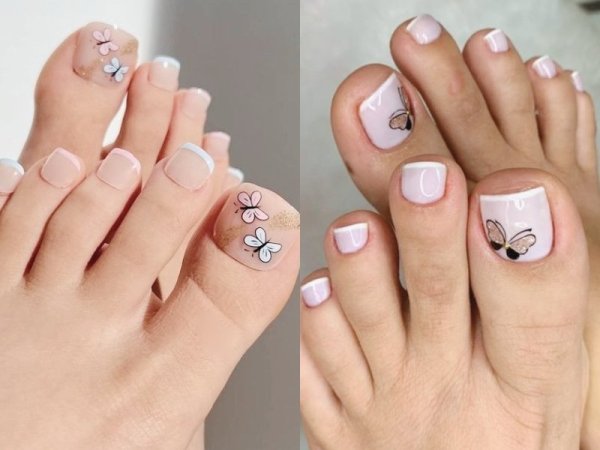 Nail chân họa tiết hình bướm sang chảnh, kiêu sa giúp bàn chân thêm sang trọng (Nguồn: minhtuoi992 – Pinterest, piresunhas – Instagram) Kiểu nail này khá đơn giản nhưng cần kỹ thuật vẽ chuyên nghiệp (Nguồn: Phượng Nail – Pinterest, Olad Beauty – Pinterest) Những kiểu sơn họa tiết bướm vô cùng sống động (Nguồn: Ngân Navi – Pinterest)Mẫu nail chân đơn giản Hàn Quốc