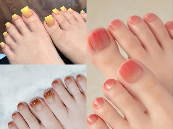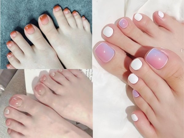 Mẫu nail chân đơn giản sơn ombre với hiệu ứng lan màu tạo hiệu ứng vô cùng bắt mắt (Nguồn: Song Như Nail – Pinterest, ngocchuacm – Pinterest, hocnghenail.com) Kiểu móng chân đơn giản đẹp sơn gel chân ombre với những màu sắc tươi sáng giúp bộ nail thêm nổi bật và ấn tượng (Nguồn: O_Round 1128 – Pinterest, Ihousand Nail – Pinterest, 1010 Nail – Pinterest)Mẫu nail chân đơn giản sơn nhiều màu