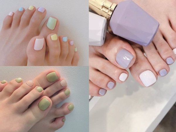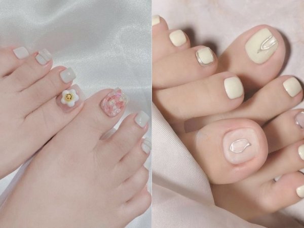 Những mẫu nail chân đơn giản với những màu pastel rực rỡ, trẻ trung cho học sinh, sinh viên (Nguồn: kbeautyaddiction – Pinterest, TTL Nail – Pinterest) Không nên đính đá, đính charm hay úp móng quá dài sẽ khó vận động và di chuyển nhiều (Nguồn: 1010 Nail – Pinterest) Màu nail chân đẹp tôn da trắng, bạc đơn giản vừa sáng da lại tự nhiên, thanh lịch (Nguồn: Mim Nail – Pinterest, Thutrang – Pinterest)Mẫu nail chân đơn giản cho dân văn phòng