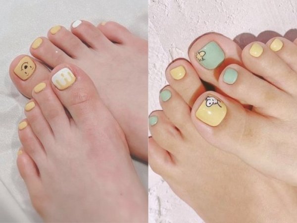 Các mẫu nail chân đơn giản dễ thương họa tiết con vật thể hiện phong cách trẻ trung, đáng yêu riêng của bạn (Nguồn: An Hàn – Pinterest, Hương Lê Mai Beauty – Pinterest, lukinovaop – Pinterest, Huyền Anh Nail – Pinterest) Kiểu nail chân với những màu sắc tươi sáng, dịu dàng phù hợp với các trang phục đi chơi thường ngày (Nguồn: truongphuong15081993 – Pinterest, Dan Can Nail – Pinterest, Jade Phan Nail, Vàng Anh Nail)Mẫu nail chân đơn giản họa tiết hoa lá