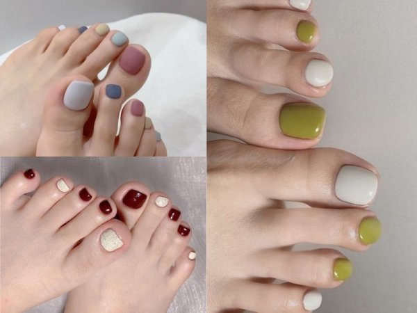 Mẫu nail chân đơn giản sơn nhiều màu vô cùng độc đáo, cá tính, mang phong cách riêng (Nguồn: Lovlyze – Pinterest, giangtran0806 – Pinterest, Tinh Nail – Pinteres) Những kiểu nail chân với những màu sắc có độ tương phản nhẹ cho bộ móng thêm nổi bật (Nguồn: Dan Cao Nail – Pinterest, fadmood.com – Pinterest, Tinh Nail – Pinterest)Mẫu nail chân đơn giản sơn nhám