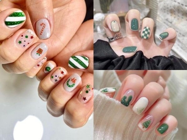 Mẫu nail noel xanh lá (Nguồn: Spicy Tofu – Pinterest) Mẫu nail noel xanh lá (Nguồn: Sadie Hillhouse – Pinterest)Mẫu nail noel trắng đẹp