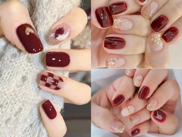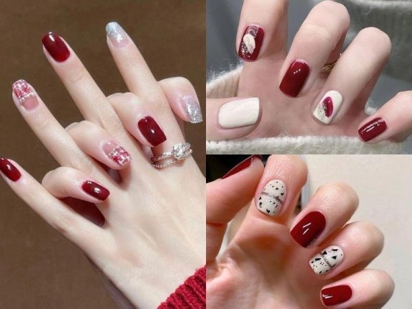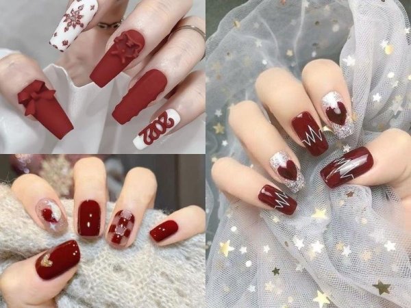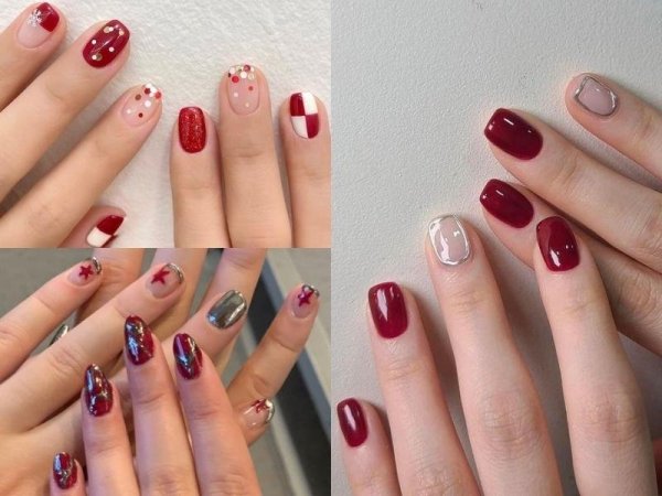 Mẫu nail đỏ rượu sang chảnh (Nguồn: kbeautyaddiction.com) Mẫu nail đỏ rượu sang chảnh (Nguồn: Nga Phạm Lê – Pinterest)Mẫu nail noel họa tiết tuần lộc