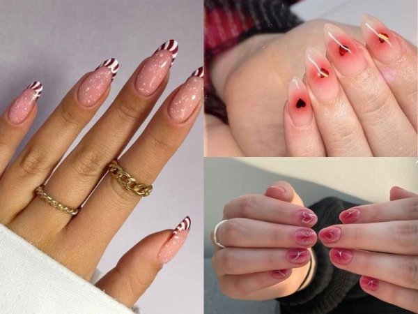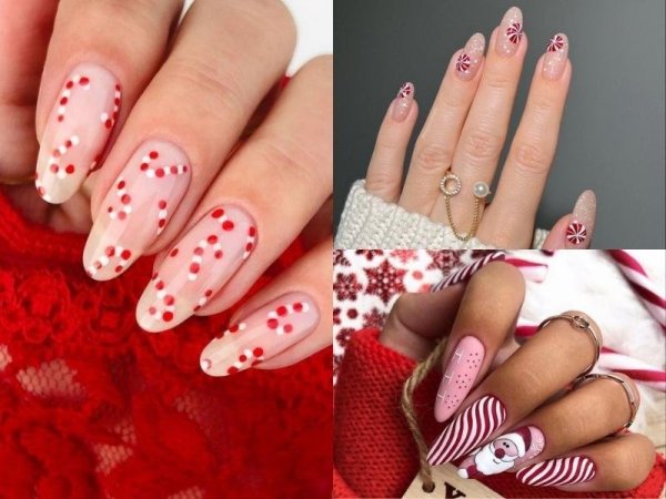 Mẫu nail noel kẹo ngọt (Nguồn: kbeautyaddiction.com) Mẫu nail noel kẹo ngọt (Nguồn: Nail Art Journal – Pinterest)Mẫu nail noel hồng nhạt