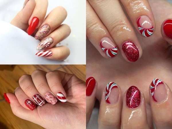 Một ý tưởng mẫu nail noel xinh và đáng yêu dành cho các nàng đó là nail kẻ sọc. Mẫu nail này sẽ lấy cảm hứng dựa vào hình ảnh những viên kẹo dịp lễ Noel. Một mẹo dành riêng cho các nàng để có thể tạo ra những đường kẻ sọc cho viên kẹo đó là sử dụng băng keo.